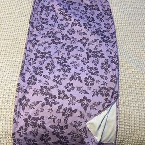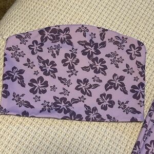 Cute 2PC Long Maxi skirt with side slit and matching tube top in a lovely lavender pattern. The top is a pullover style tube style top. The skirt is a pull-on with elastic waistband and side slit. Both have an all over print.