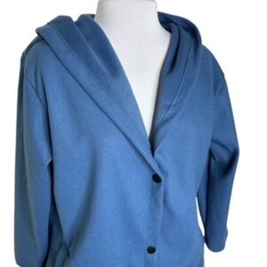 NWOT No Label Long Length Snap Front Hoodie Jacket w/ Faux Belt Embellishmt Sz L