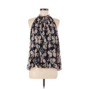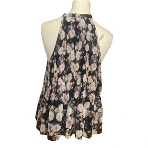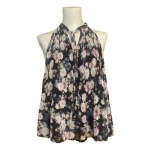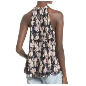 NWOT Nordstrom Leith Sz Large Pleated Sleeveless Black Floral Blouse