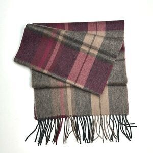 NWOT Nordstrom Men’s Wool Scarf Taupe and Wine Berry Plaid Excellent