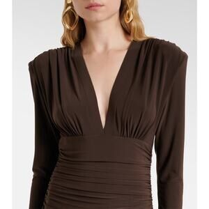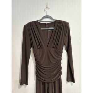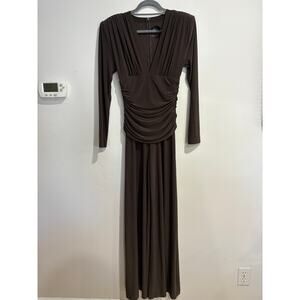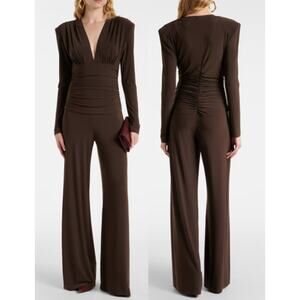NWOT Norma Kamali Ruched Jersey V-Neck Wide Leg Jumpsuit Chocolate Size S/36