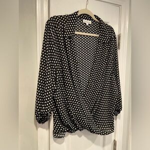 NWOT NorthStyle Size 2X Black Cream Polka Dot 3/4 Sleeve Flowy Wrap Front Blouse