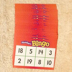 This Trend Enterprises, Inc. Numbers Bingo Game has been placed into a clean ziploc bag to keep it organized and clean for its new owner.