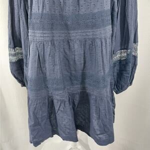 From Old Navy is this fabulous pouf sleeved dress in navy blue cotton! Textured with tiny dots and embellished with stripes of gorgeous crochet! RUFFLED neckline, elastic wrists, button back neck! Adorably boho chic! Size L, ***NEW Without Tags, and Guaranteed Superb by Lily @HauteClub!*