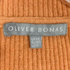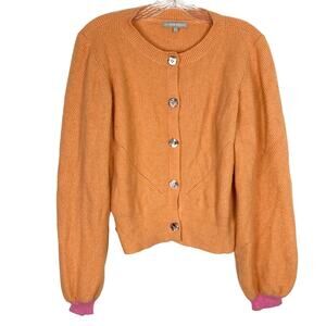 NWOT OLIVER BONAS Cardigan Sweater 8 Orange Pink-Cuff Balloon-Slv Rib Brown-Btns