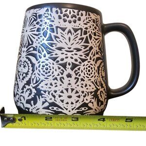Made of high quality stoneware this dark matte brown (almost black) mug features a distinctive and textured bone stencil design, a 20oz capacity and is suitabe for bith hot and cold beverages. NWOT. Excellent condition.