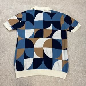 NWOT OXKnit Vintage Geometric Abstract Knitted Short Sleeve Polo Shirt Size S