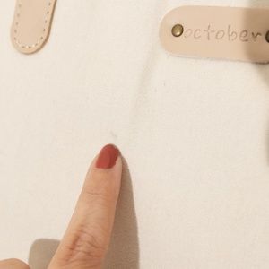 Adorable never-used October tote bag with interior zipper pocket and exterior phone pocket. Made of heavy canvas and vegan leather. There is a spot on the front of the bag (see photo) that I think is just a variation in the natural fabric, but I wanted to point it out. Come from a pet friendly but smoke free home.