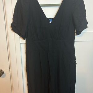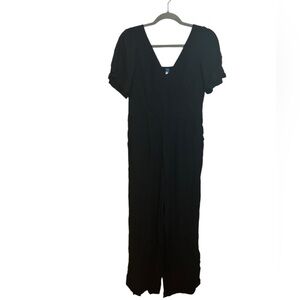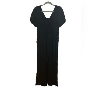 New without tags. Never worn. This is a really cool sample style from old navy. This is a black v-neck Short sleeve puff sleeve jumpsuit. There is no material tag but this feels like viscose. Back of jumpsuit has smocking and this has pockets. WOMENS size medium.