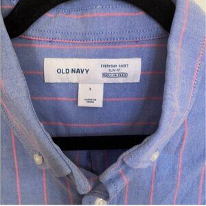 NWOT Old Navy Everyday Shirt Slim Fit Blue and Pink Stripe Button Up