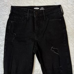 NWOT Old Navy High-Waisted Power Slim Straight Ripped Distressed Black Jeans 0P