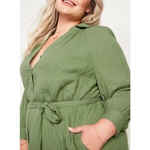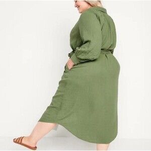 NWOT Old Navy Women's Plus Button-Down Belted Olive Green Midi Dress- Size 2XL