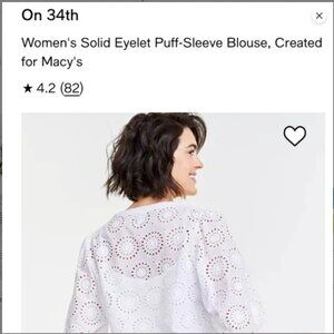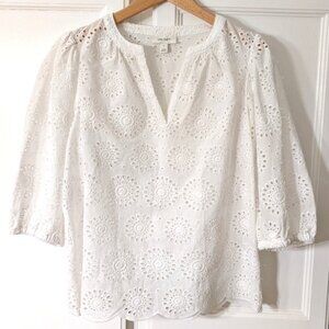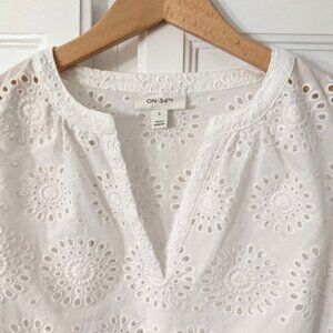 NWOT On 34th 100% Cotton White Eyelet Women's Top Size S