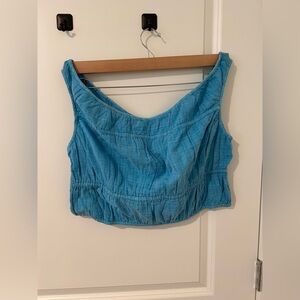 NWOT On/Off the shoulder Blue Smocked Crop Top