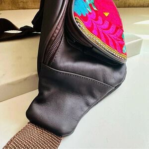 NWOT One Of A Kind Handmade Guatemalan Huipil and Leather Waist Bag