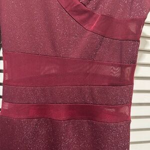 NWOT One Shoulder Contrast Mesh Bodycon Cocktail Dress Metallic Burgundy