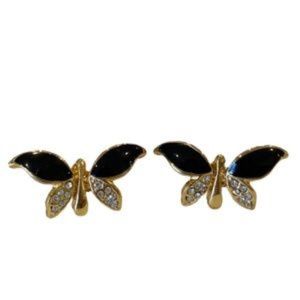 NWOT Onyx Gold Diamond butterfly Stud Earrings
