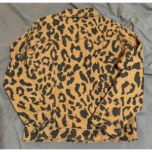 NWOT Oopsie Daisy Girl Size 8 Kid Leopard Brown Denim Jacket Chic Animal Print Cotton Trendy Collared