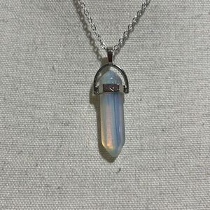 Description: Opalescent taliswoman double pointed pendant on chain.