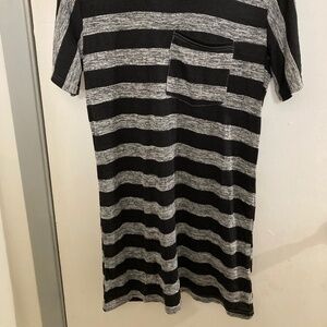 New without tags. Black & heather black striped pocket t-shirt dress. Open back with criss-cross straps. PU leather lining around collar and back straps. Lightweight fabric. Great for summer, beach, lounging, shopping & all fun things! :)