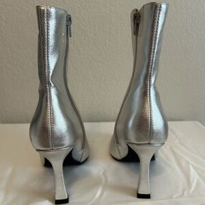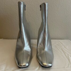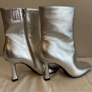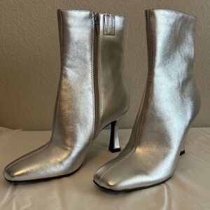 NWOT, Open Edit Women’s Hesper Metallic Silver Square-Off Toe Heeled Bootie 5.5