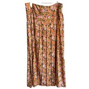 NWOT Open Edit Womens Sz XL Pleated Midi Skirt Floral Print Cottagecore Retro