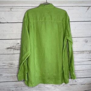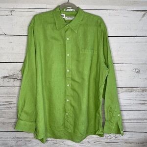 NWOT Options Green 100% Linen Long Sleeve Button Up Shirt Men Size Large 16-16.5