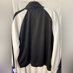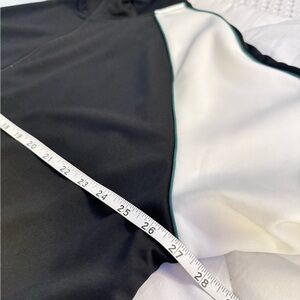 Chic light weight jacket with a bold black and white contrast green stripe. Ideal for casual outings.