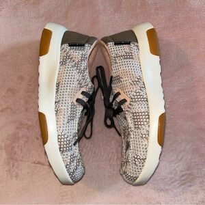 NWOT OrthoComfoot slip on boat shoes size 7. Shoes have a gray, pink and white design with mesh overlay. There are removable insoles that go with the shoes. I saw no flaws on this item.