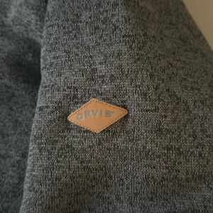 NWOT Orvis Brighton 1/4 zip fleece lined pullover in white/gray pattern with dark gray binding around collar & zip placket.Features 2 side pockets, 1/4 zip placket, long sleeve with leather Orvis logo patch & stand up collar.
