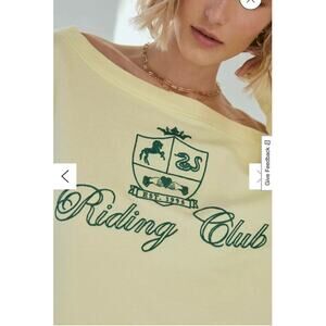 The ultimate off-duty look. This oversized Out From Under Imani sweatshirt from Urban Outfitters is an easy, slouchy pullover with a soft, midweight knit and off-the-shoulder neckline. The pale yellow hue and vintage Riding Club crest give it that preppy-meets-effortless vibe that looks good with literally anything.