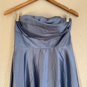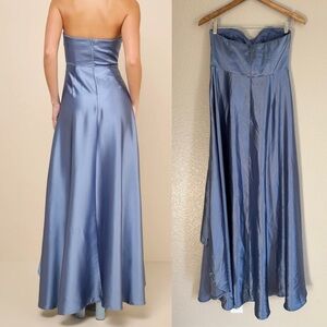 NWOT Outstanding Charm Slate Blue Satin Strapless High-Low Maxi Dress