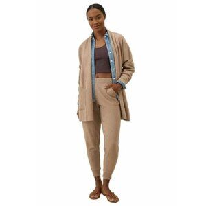 NWOT PACT Women's M/L Airplane Wrap Cardigan & Large Pants Set Organic Cotton Wheat Heather