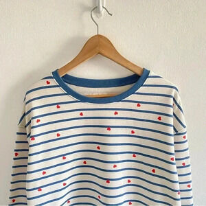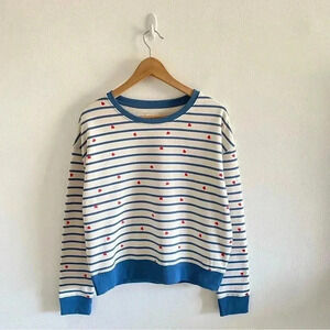 NWOT PACT White Red Heart Print Blue Stripe Organic Cotton Sweatshirt Sz Small