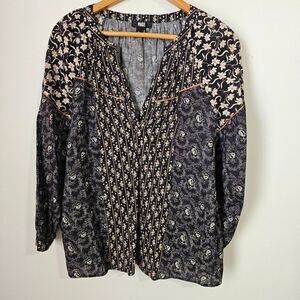NWOT PAIGE FLORAL BOHO SPLIT V NECK LONGSLEEVES TOP SIZE M