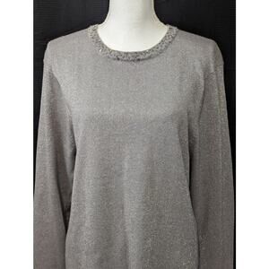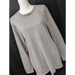 A totally trendsetting, shimmery sweater, from Passports Woman! In a fine knit of silver and ash gray, this scoop neck sweater features a beaded and sequinned neck, highlighting the face! So flattering! Long sleeves, lightweight, Size 1X, New! Never worn! ***NEW Without Tags, and Guaranteed Perfect by @nocd!***