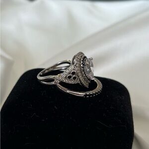 🖤🖤NWOT- PEAR SHAPE GORGEOUS STERLING SILVER BLACK AND DIAMOND CZ RING SZ 7🖤🖤