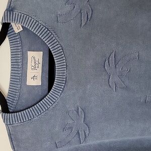 NWOT PENGUIN by munsingwear xxl blue sweater with palm trees 100% cotton