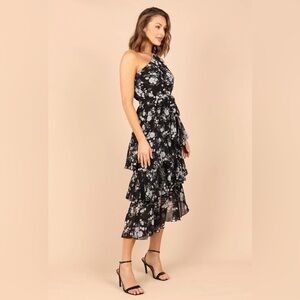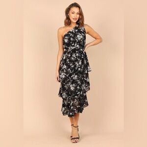 NWOT PETAL AND PUP BRIGETTE ONE SHOULDER TIERED MIDI DRESS - BLACK FLORAL