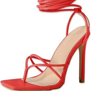 NWOT PIEPIEBUY Red Vegan Leather Strappy Heels with Slim Design Size 5.5