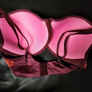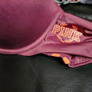 NWOT PINK 34DD campus lightly lined bra. Eggplant underwire bra with neon orange accent. item is darker than pictured
