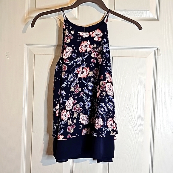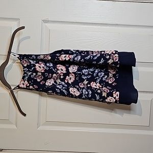 Blue, White, Pink Floral Patterned Design. Spaghetti Strap.