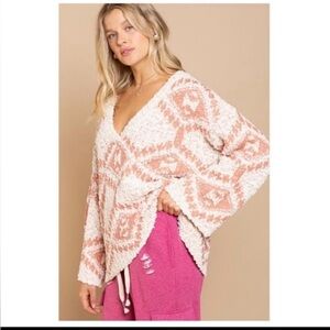 NWOT POL Aztec Sweater Cozy V Neck Sweater