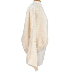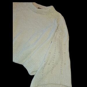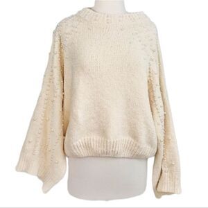 NWOT POL Chunky Chenille Semi Crop Ivory Off White Sweater with Pearls M