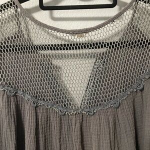 NWOT POL Cotton Gauze Distressed Hem Flowy Gray Sleeveless Top. Size Small