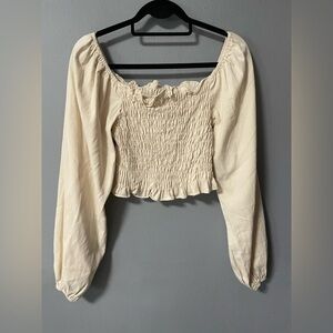 NWOT POL Smocked Balloon Sleeves Beige Top. Size Small
