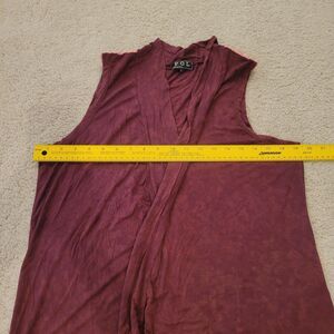 NWOT POL Women Open Front Sleeveless Cardigan Vest Fringed Hem Burgundy Small