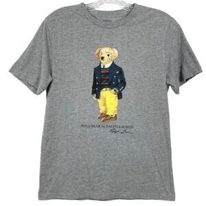 NWOT POLO RALPH LAUREN Tshirt Kids 14-16-L Logo Bear Academia Grey Short-Sleeve