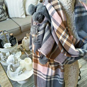NWOT! POM POM Plaid WRAP SCARF So PRETTY!!