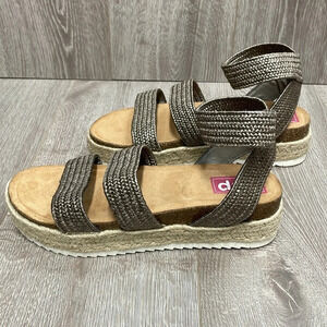NWOT EDL Presents POP Platform Espadrille Sandal in size 10M. Excellent new condition. Taupe, woven ankle wrap, padded insole, non skid rubber sole, espadrille base. Please see photos for approximate measurements and details. Item may show difference in color based upon photography and perception. Photos are part of the description, as everyone’s level of condition may vary. From smoke free and pet free home. All packages are shipped the same or next business day.